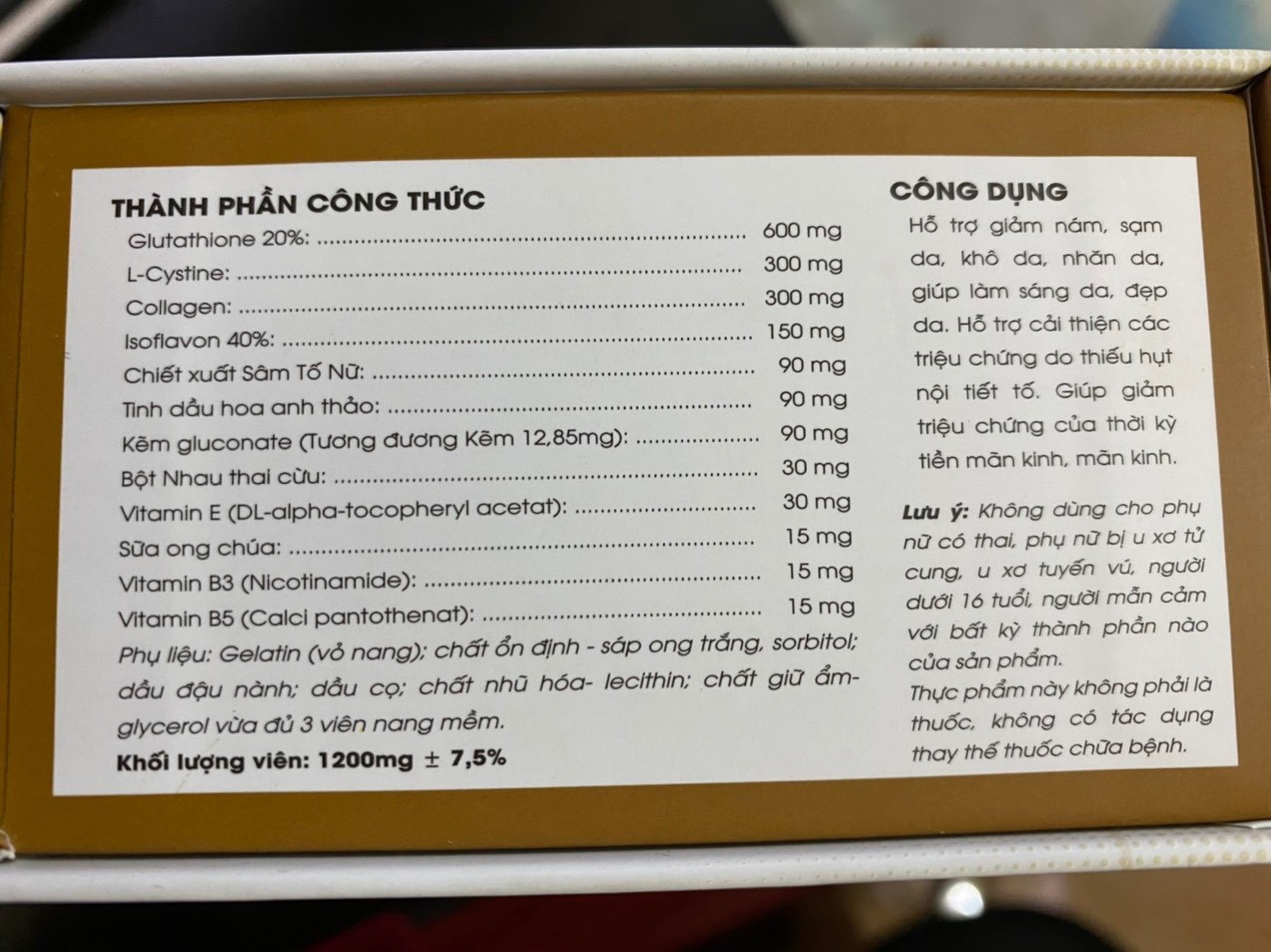 - Vitamin B5 ....................... 15mg 🆘 Lưu ý: