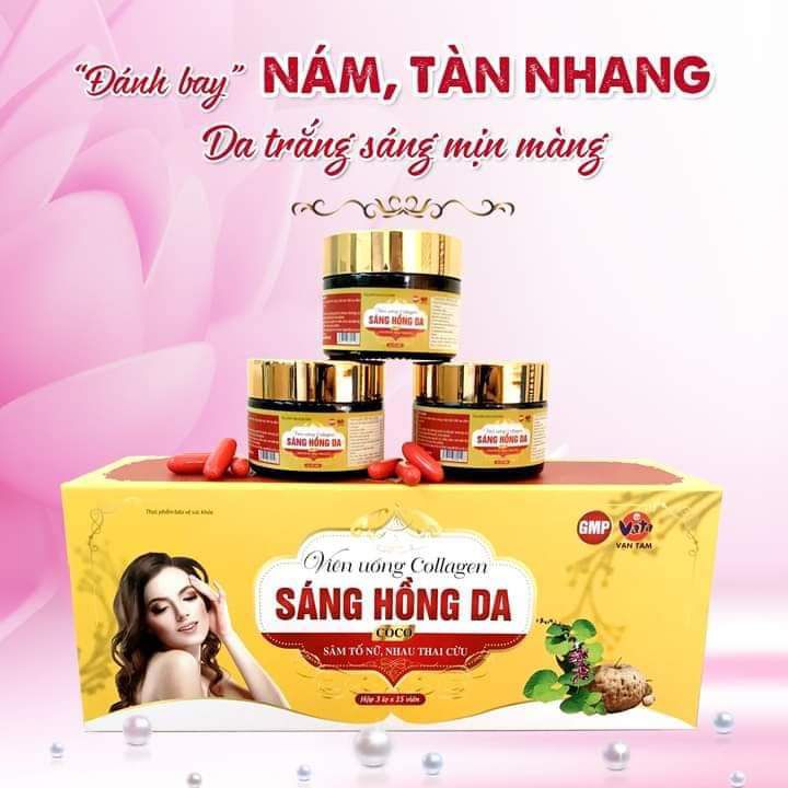 Collagen sáng hồng da giúp chị em phụ nữ da sáng ,sạch nám ,tàn nhang và tăng cường nội tiết tố -Chiết xuất từ thiên nhiên giúp cải thiện trình trạng khô hạn-Đánh bay nám ,tàn nhang hiệu quả -Đem lại làn da mịn màng
