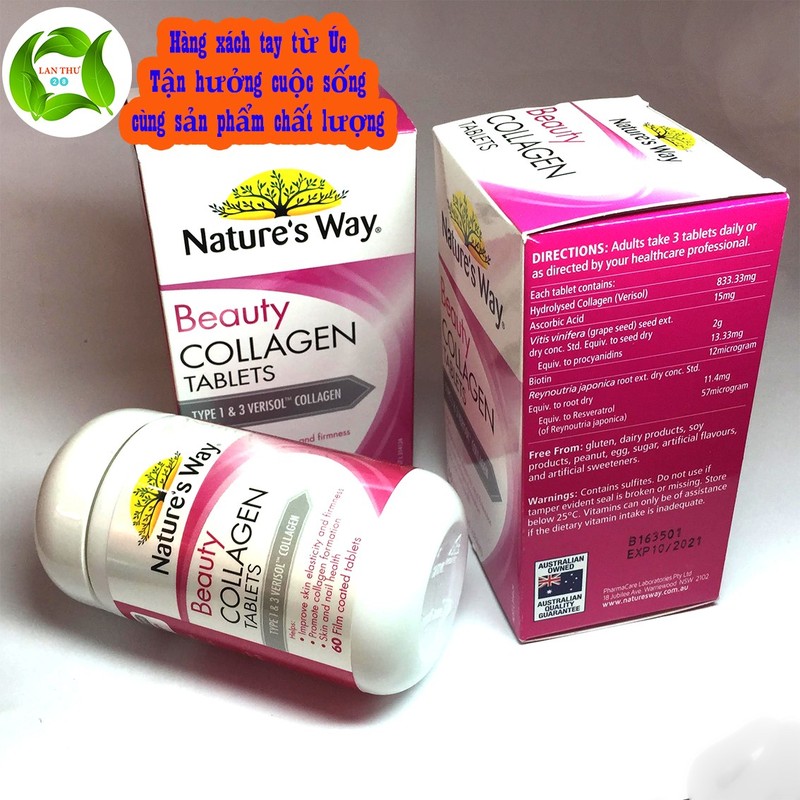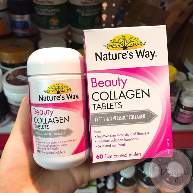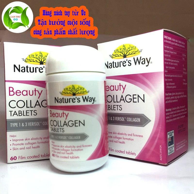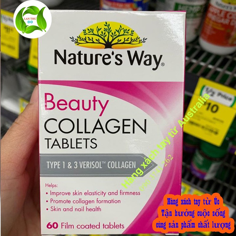 Beauty Collagen Nature’s Way 60 viên của Úc giúp bổ sung hàm lượng collagen đang thiếu hụt trong cơ thể - ngăn ngừa nếp nhăn, làm tăng độ đàn hồi, săn chắc cho da, hỗ trợ làm liền sẹo,...