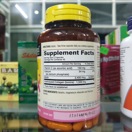 - Quy cách: Hộp 120 viên-1500mg Collagen thủy phân
