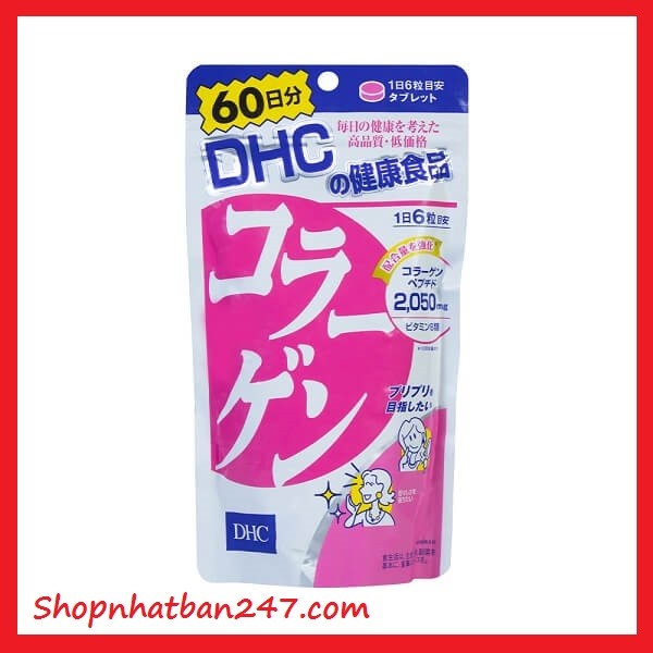 Viên uống DHC Collagen dạng viên của nhật là thực phẩm bổ sung Collagen giúp tăng cường độ đàn hồi cho da, cho làn da căng mịn, mềm mại, sáng bóng. Ngăn ngừa sự xuất hiện của các nếp nhăn, đặc biệt là vùng da mặt, mắt, cổ và tay, đồng thời làm chậm sự lão hóa cơ thể. Collagen của DHC có nguồn gốc từ da cá, tăng cường thêm các hỗn hợp vitamin B2, vitamin B1