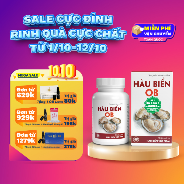 Đại lý phân phối chính thức của Sản phẩm hàu biển OB--------------------------------------------------------------------------1 .Công dụng của Hàu biển OB⚡Tăng Testosterone, tăng cường sinh lý nam⚡Tăng ham muốn, làm chậm quá trình mãn dục nam⚡Hỗ trợ rối loạn cương dương, xuất tinh sớm.⚡Tăng chất lượng tinh trùng, tinh trùng nhanh hơn, khỏe hơn, tăng khả năng thụ thai⚡Cải thiện tình trạng hiếm muộn, vô sinh ở nam giới.---------------------------------------------------------------------------2. Thành phần của Tinh Hàu Biển OBChiết xuất hàu biển tươi…………….350 mgKẽm Oxyd………………………….....8,8 mgVitamin E……………………………...2 mgPhụ liệu: Chất nhũ hóa : sáp ong (901), Chất nhũ hóa: lecithin (322i), Chất làm đông: Gelatin (109), Chất tạo ngọt: Sorbitol (420ii), Chất làm dày: Glycerin (422), Chất nhũ hóa: Dầu đậu nành (479) vừa đủ 1 viên nang mềm.---------------------------------------------------------------------------3.Đối tượng sử dụng Hàu Biển OB⚡ Người tập thể thao, thể hình muốn tăng cơ nhanh⚡Người muốn nâng cao số lượng & chất lượng tinh trùng⚡Người cần tăng cường sức khỏe, tăng cường sinh lý nam.