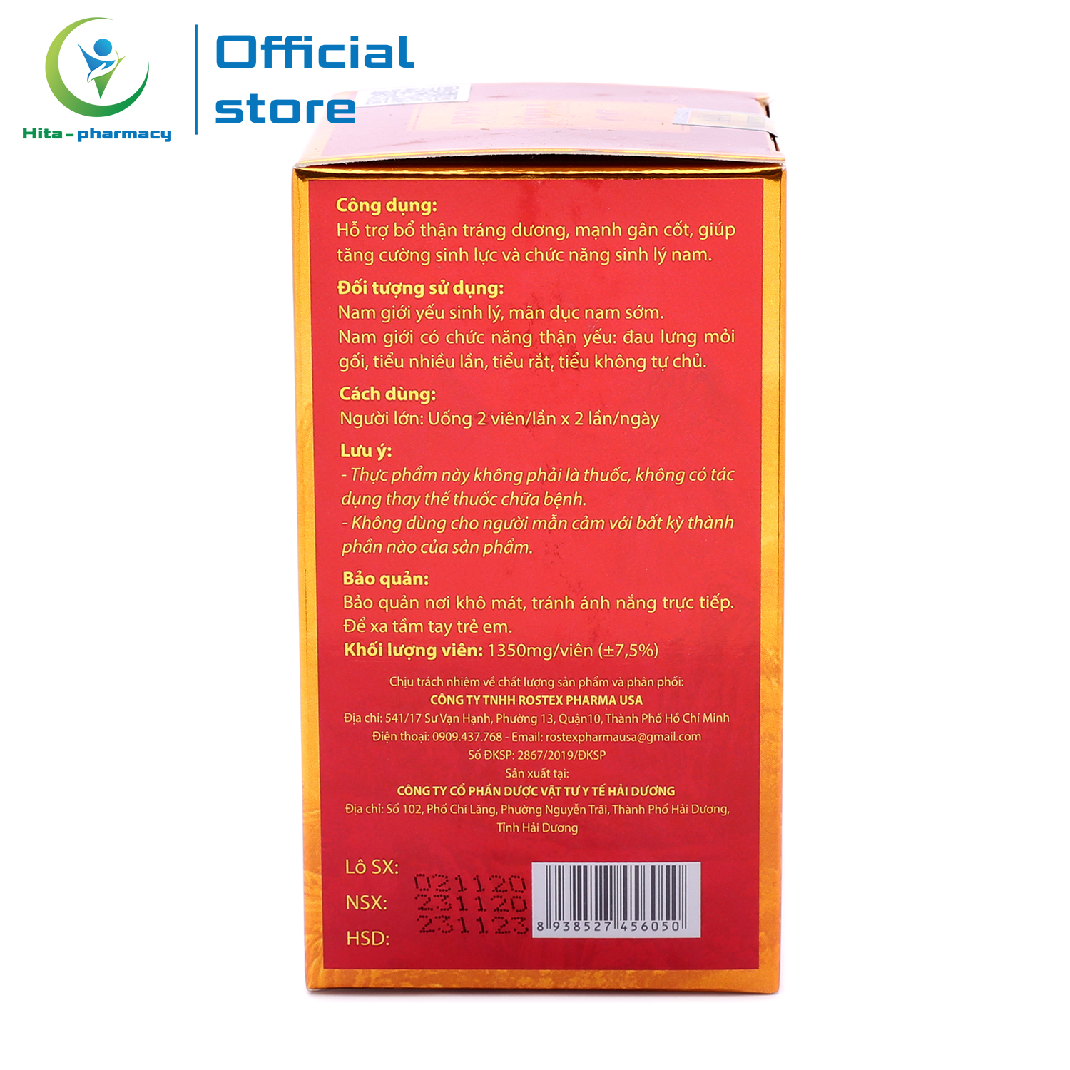 - Thương nhân chịu trách nhiệm sản phẩm: CÔNG TY TNHH ROSTEX PHARMA USA