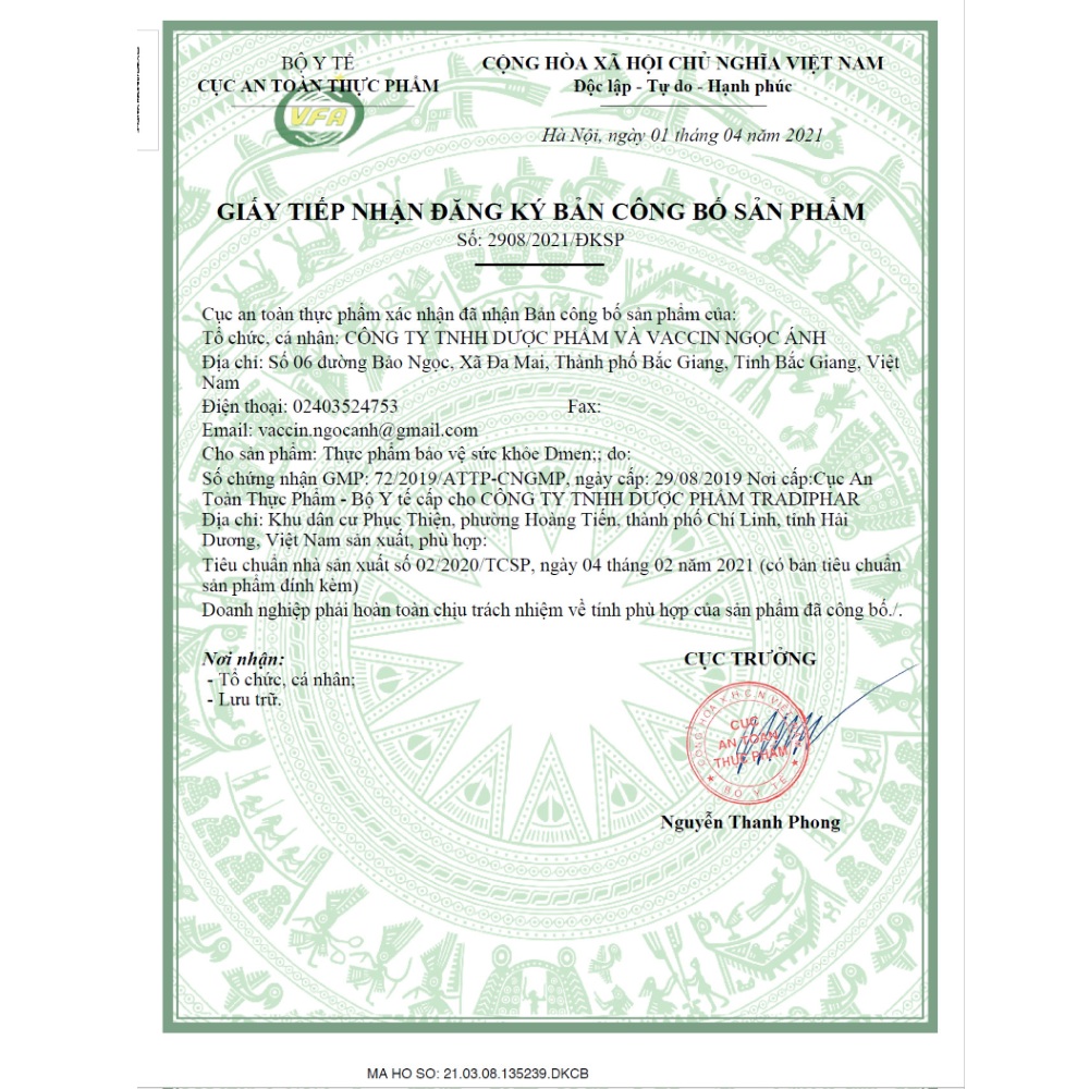 CTY chịu trách nhiệm phân phối: CTy TNHH Dược Phẩm và Vaccin Ngọc Ánh