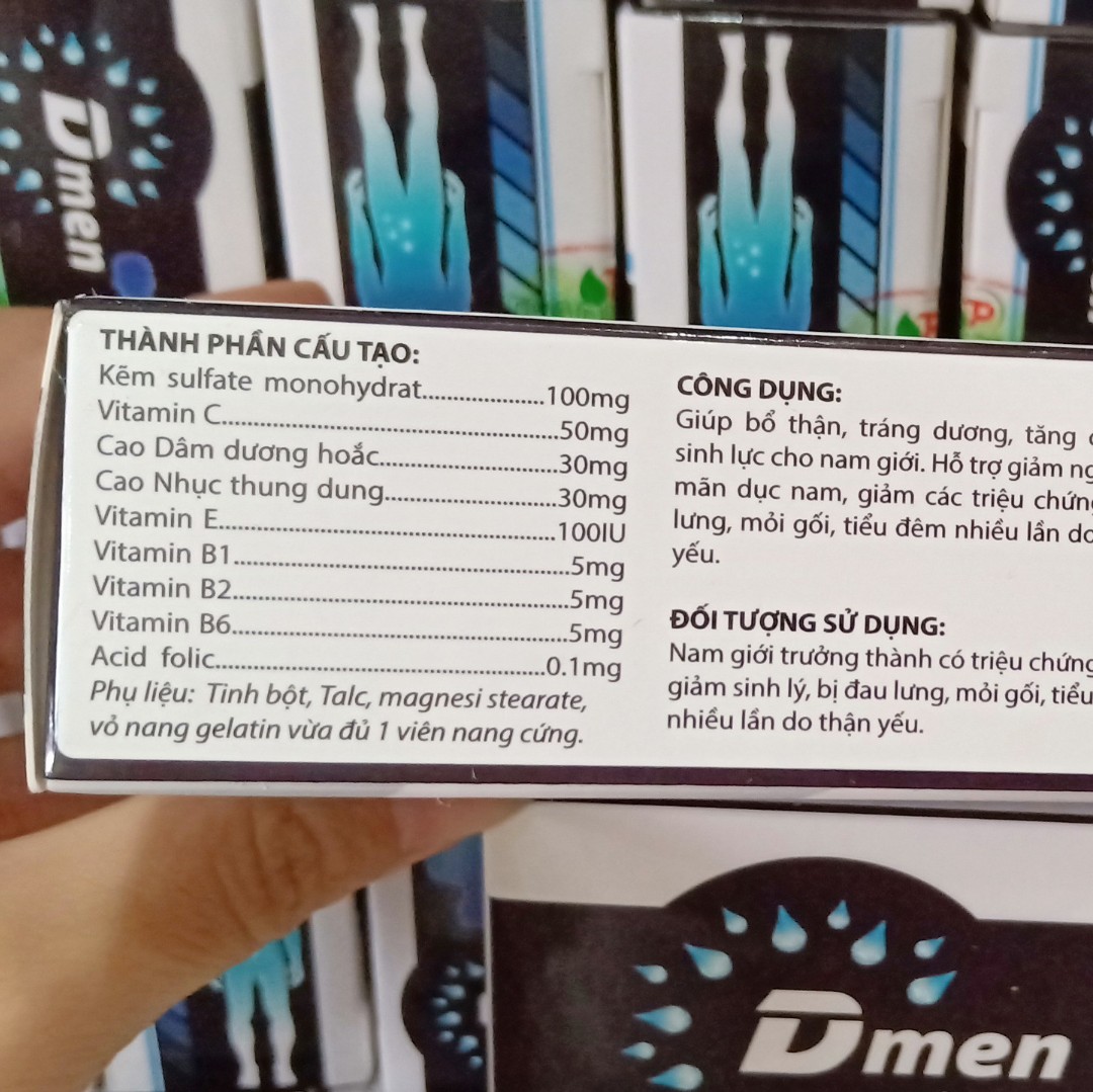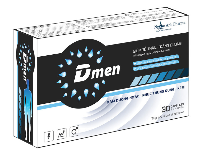 Dmen giúp bổ thận, tráng dương, tăng cường sinh lực cho nam giới. Hỗ trợ giảm các nguy cơ mãn dục nam, giảm các triệu chứng đau lưng, mỏi gối, tiểu đêm nhiều lần do thận yếu.