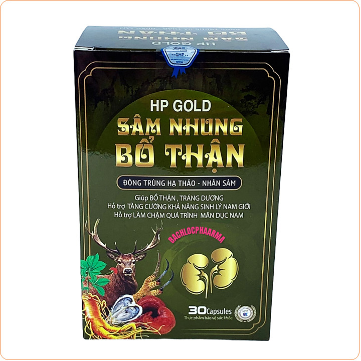 Viên uống tăng cường sinh lý nam Sâm Nhung Bổ Thận HP Gold, Đông Trùng Hạ Thảo Nhân Sâm giảm đau lưng, mỏi gối, tiểu đêm nhiều - Hộp 30 viên