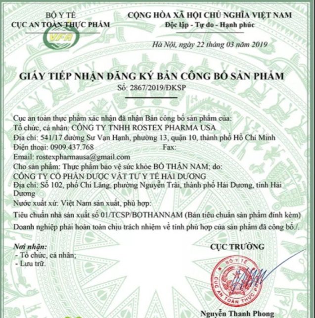 - Sản phẩm được Bộ Y tế cấp phép sản xuất, chứng nhận đạt chuẩn an toàn vệ sinh thực phẩm chức năng, an toàn tuyệt đối khi sử dụng.