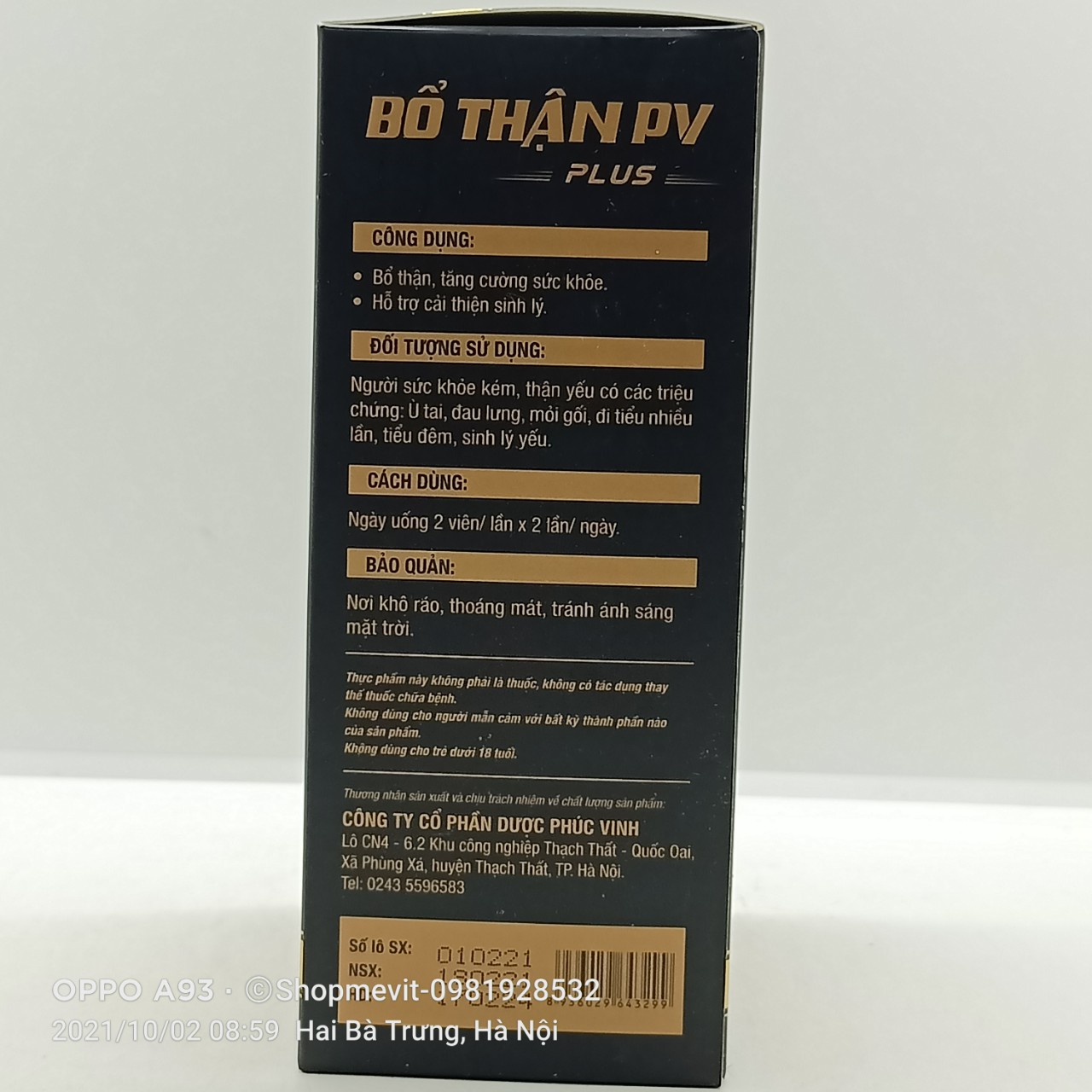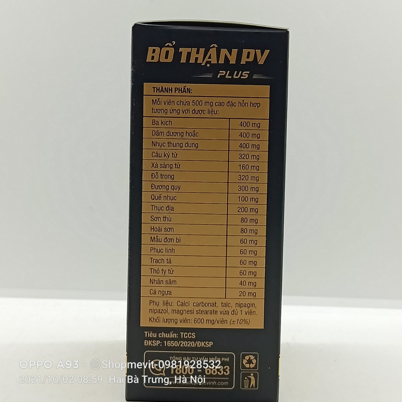 Hướng dẫn sử dụng Bổ Thận PV PlusĐể có một lộ trình sử dụng hiệu quả, thì quý vị có thể hỏi ý kiến của bá 190.000đ