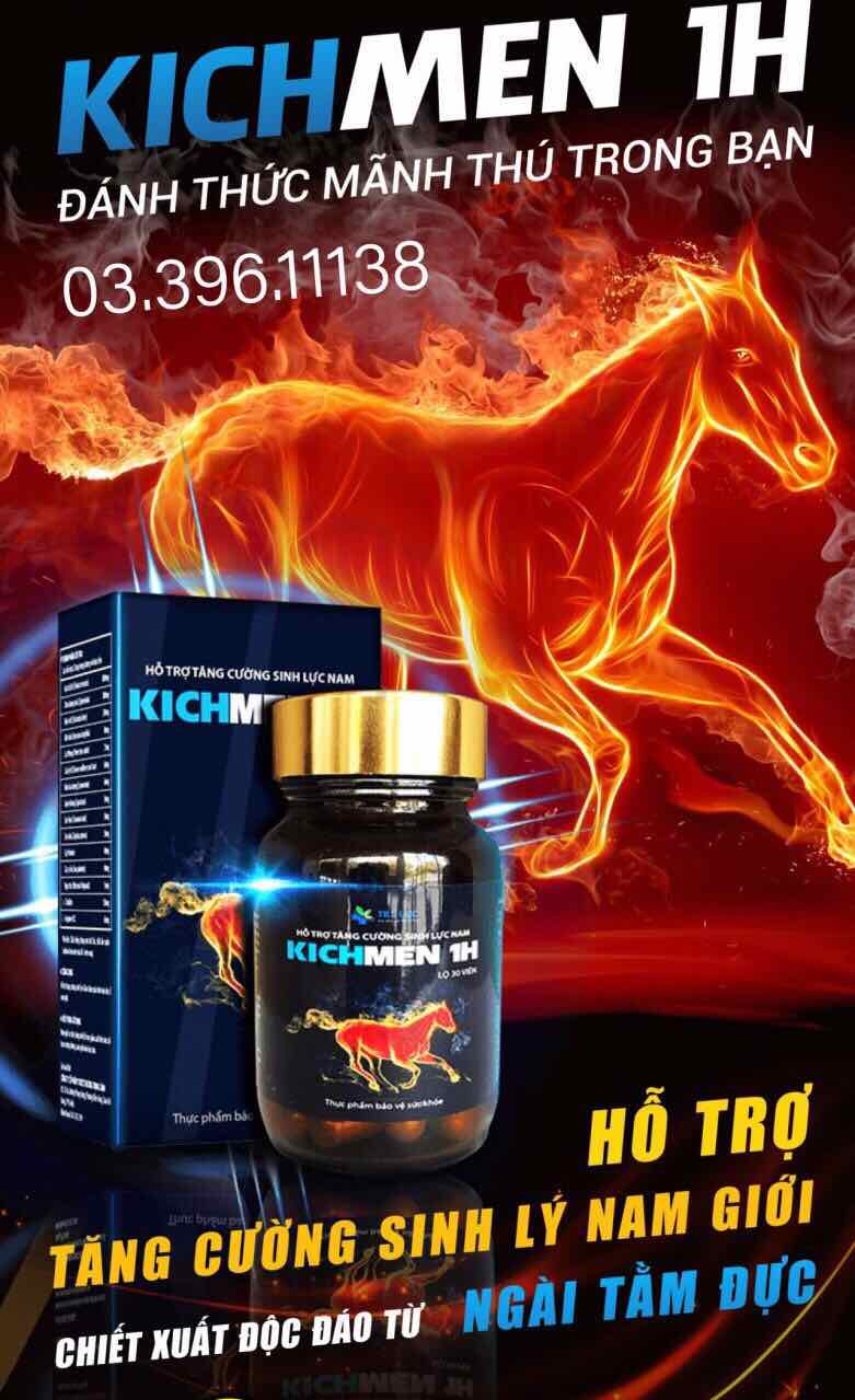 Kích men 1h là bài thuốc được giáo sư Trần Trọng Trí là Việt Kiều Mỹ nghiên cứu và được FDA thông qua,, Viên uống kichmen 1h chứa các thành phần là dược chất có trọng thiên nhiên rất an toàn cho cơ thể, giúp tăng cường dưỡng chất bị thiết hụt - nguyên nhân chính dẫn đến suy giảm ham muốn. Kichmen 1h bao gồm:
