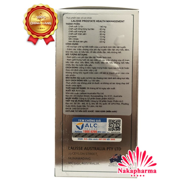 ❤ TIỀN LIỆT TUYẾN ÚC LALISSE PROSTATE HEALTH MANAGEMENT 100V – GIẢM PHÌ ĐẠI, U XƠ LÀNH TÍNH TUYẾN TIỀN LIỆT ⭐⭐⭐NAKAPH 1.250.000đ