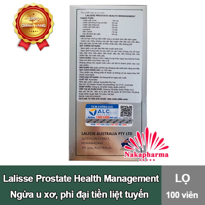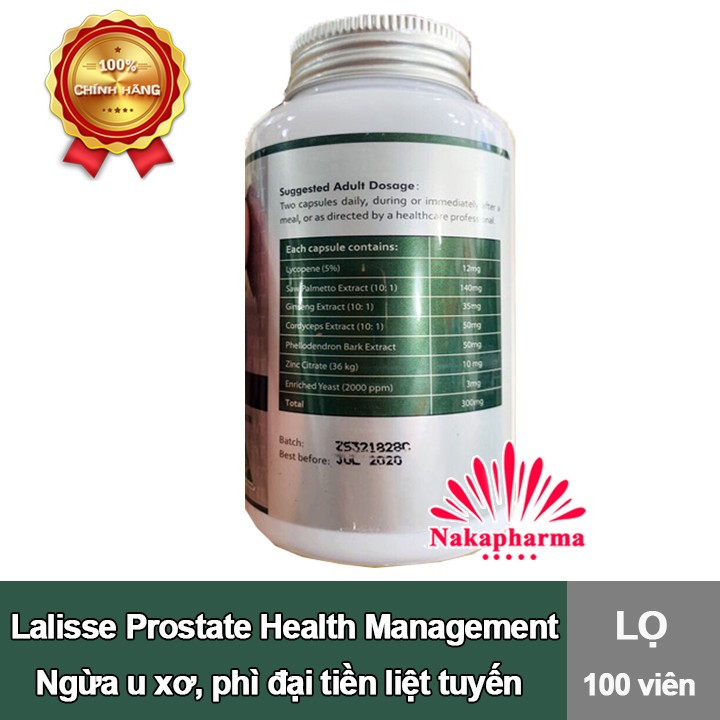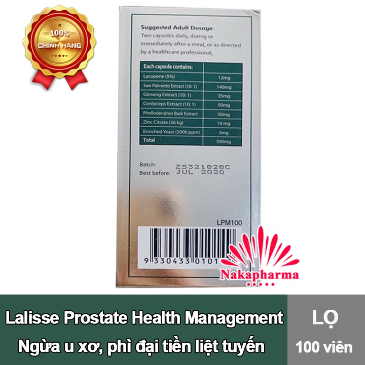 ❤ TIỀN LIỆT TUYẾN ÚC LALISSE PROSTATE HEALTH MANAGEMENT 100V – GIẢM PHÌ ĐẠI, U XƠ LÀNH TÍNH TUYẾN TIỀN LIỆT ⭐⭐⭐NAKAPH 1.185.000đ