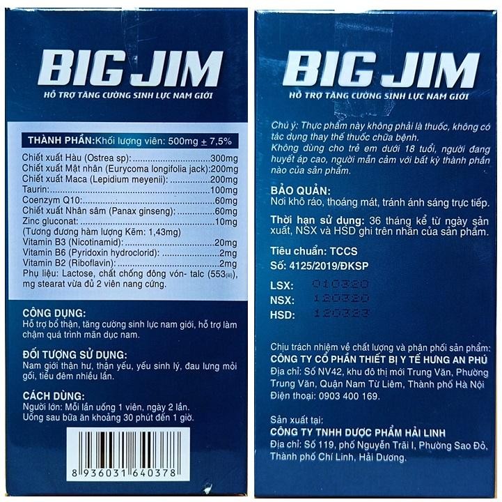 Tinh chất Hàu Biển Ostrea sp Big Jim - Giúp bổ thận, tráng dương, tăng cường sinh lý- Hộp 30 viên