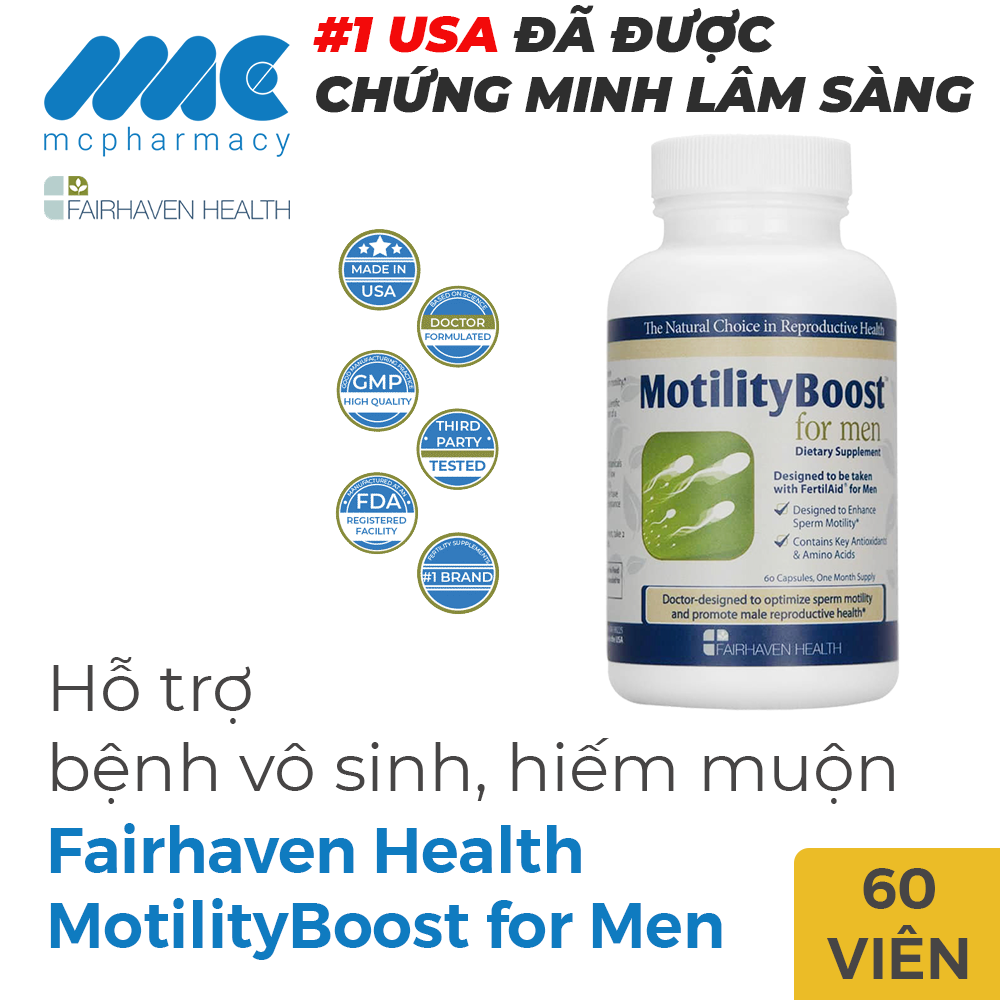 Fairhaven Health MotilityBoost for Men #1 USA đã được chứng minh lâm sàng hỗ trợ vô sinh, hiếm muộn
