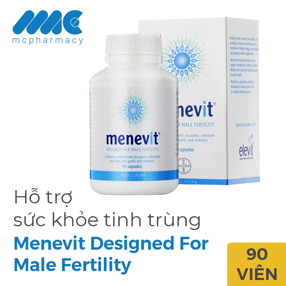 Tên sản phẩm:MenevitQuy cách:Chai 90 viênThương hiệu:BayerXuất xứ:ÚcTHÔNG TIN SẢN PHẨM MENEVIT TĂNG KHẢ NĂNG THỤ THAI, TINH