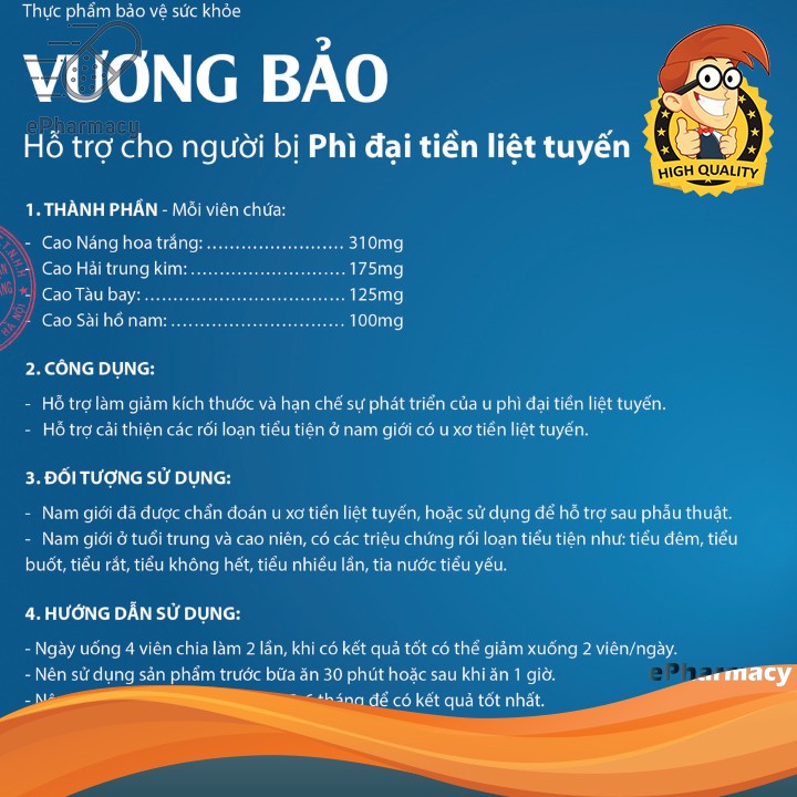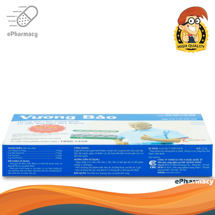 VƯƠNG BẢO - LOHHANgăn ngừa và hạn chế sự phát triển của khối phì đại tiền liệt tuyến. Giúp cải thiện các rối lo