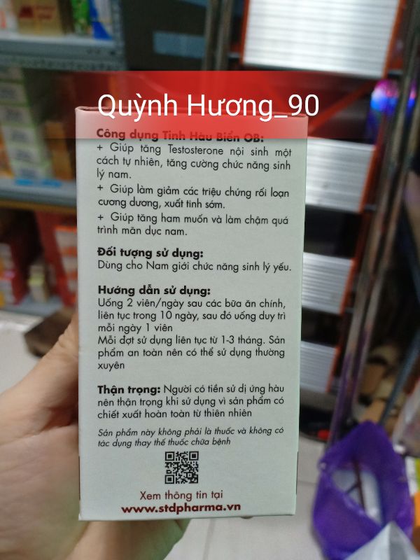 Công dụng của Tinh hàu biển OB:Tăng Testosterone, tăng cường chức năng sinh lý namTăng cơ cho nam giớiTăng ham muốn, làm chậm quá trình mãn dục namHỗ trơ rối loạn cương dương, xuất tinh sớm.Tăng chất lượng tinh trùng, tinh trùng nhanh hơn, khỏe hơn, tăng khả năng thụ thaiCải thiện tình trạng hiếm muộn, vô sinh ở nam giới.Đối tượng sử dụng của Tinh Hàu Biển OB: Người tập thể thao, thể hình muốn tăng cơ nhanh Người muốn nâng cao số lượng & chất lượng tinh trùng Người cần tăng cường sức khỏe, tăng cường khả năng sinh lý.Hướng dẫn sử dụng của Tinh Hàu Biển OB:- Người muốn nâng cao sức khỏe, tăng cường sinh lý: Uống 2 viên/ngày, sau các bữa ăn chính, liên tục trong 10 ngày, sau đó uống duy trì mỗi ngày 1 viên. Mỗi đợt sử dụng liên tục từ 1-3 tháng.- Người tập thể thao, thể hình: Uống 2 viên/ngày, sau các bữa ăn chính, liên tục trong 1 tháng, sau đó duy trì mỗi ngày 1 viên kết hợp luyện tập. Mỗi đợt sử dụng liên tục 2-6 tháng- Người muốn nâng cao số lượng, chất lượng tinh trùng: Uống ngày 2 viên lên tục trong 1 tháng, sau đó duy trì mỗi ngày 1 viên. Mỗi đợt sử dụng liên tục trong 2-6 tháng. Tinh hàu biển OB được sản xuất bằng công nghệ hiện đại tại nhà máy có dây chuyền đạt chuẩn của Công ty TNHH Dược phẩm USAPHA. Sản phẩm đảm bảo an toàn cho người dùng, cho hiệu quả ổn định, lâu dài, ít gây tác dụng phụ ngay cả khi sử dụng lâu dài nởi các thành phần dưỡng chất được chiết tách từ hàu biển tươi tự nhiên.Sản phẩm đang được phân phối bởi Công ty TNHH Grow Green AZ - đơn vị uy tín trong lĩnh vực cung cấp và phân phối thực phẩm bảo vệ sức khỏe. Tinh hàu biển OB còn đạt danh hiệu sản phẩm vàng vì sức khỏe cộng đồng do Hiệp hội Thực phẩm chức năng Việt Nam trao tặng.