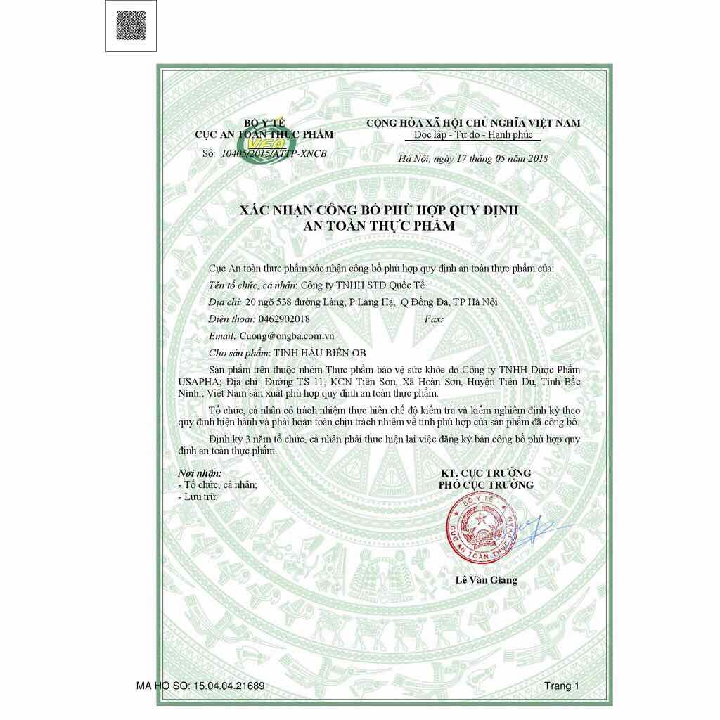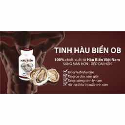 Con hàu từ lâu đã được ví là “thực phẩm của tình yêu”, có tác dụng tích cực với khả năng sinh lý của nam giới. Tinh hàu biển OB với chiết xuất từ 100% Hàu Biển Việt Nam giúp bổ sung kẽm và những chất cần thiết giúp kích thích sản xuất testosterone & tăng ham muốn ở nam giới, tăng chất lương tinh trùng, duy trì thời gian bền bỉ. Giảm tình trạng xuất tinh sớm, duy trì phong độ trong suốt thời gian dài không giống các sản phẩm chữa cháy tạm thời khác