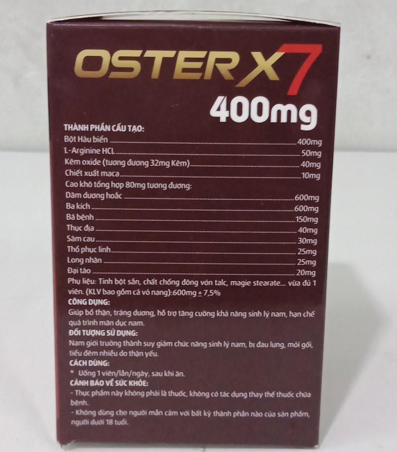 Bổ thận tráng dương, tăng cường chức năng sinh lý nam giới, viên uống OSTER X7 chứa bột hàu biển, chiết xuất Maca và các thảo dược tự nhiên, lọ 30 viên