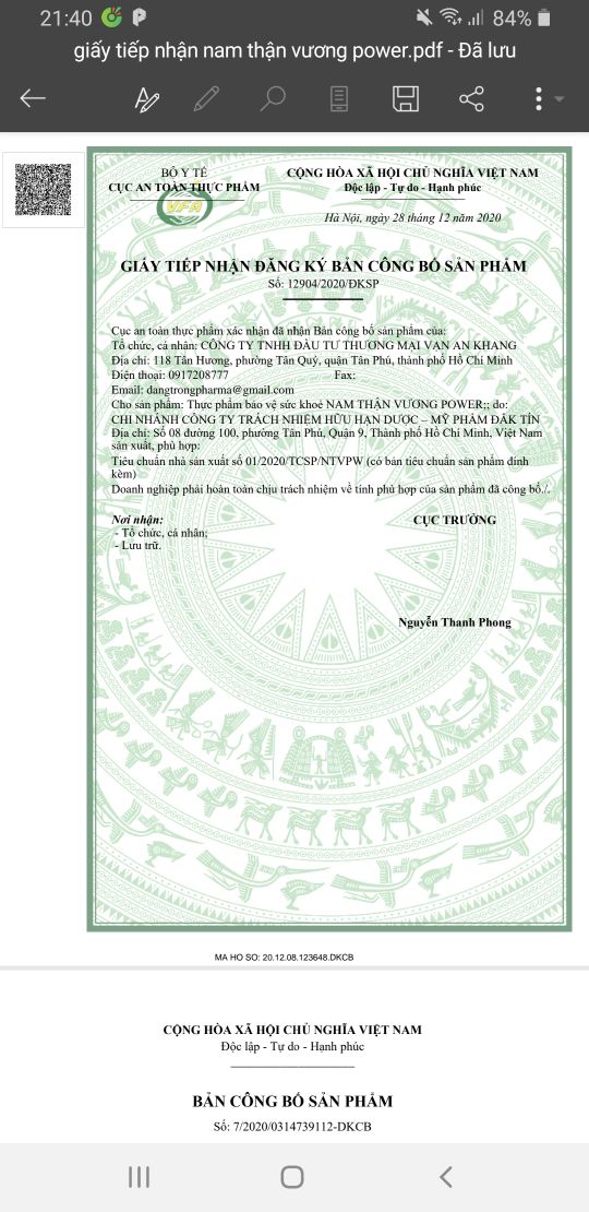 Viên uống sinh lý nam giới Nam Thận Vương - Sản phẩm cao cấp uy tín chính hãng VAK tốt cho sức khoẻ được bộ Y Tế ch�� 330.000đ