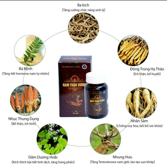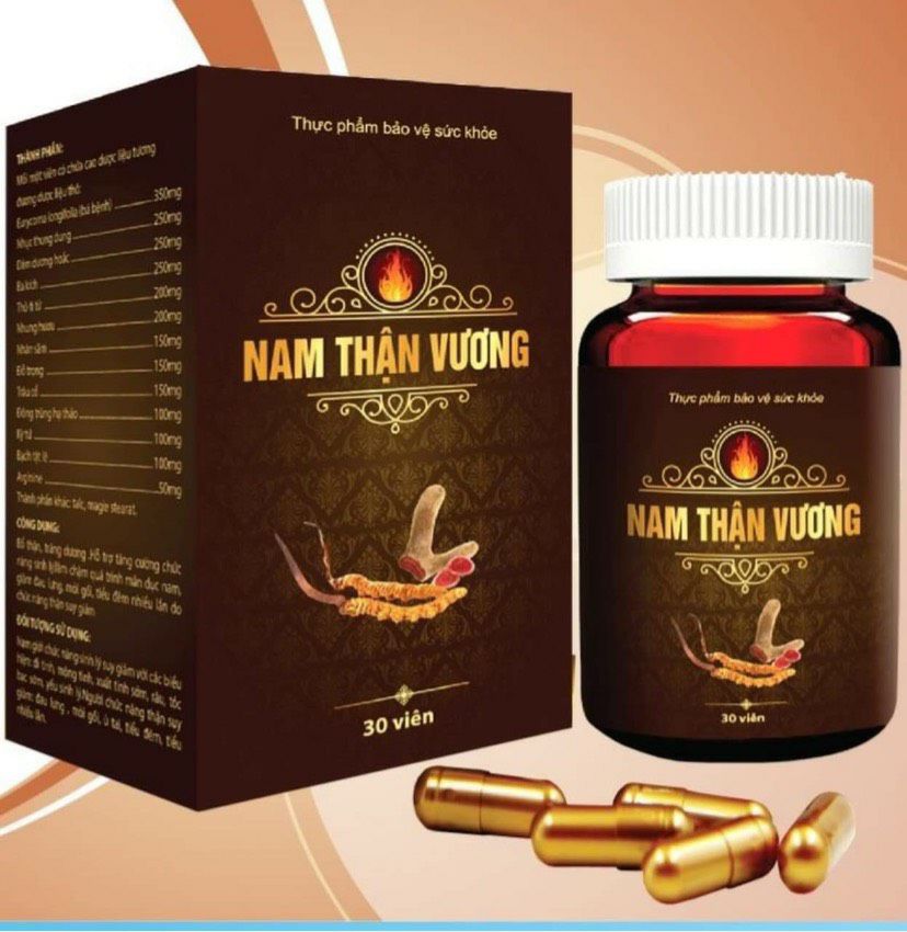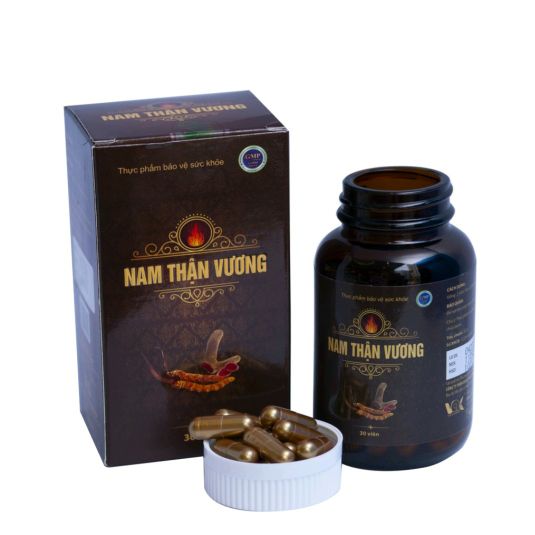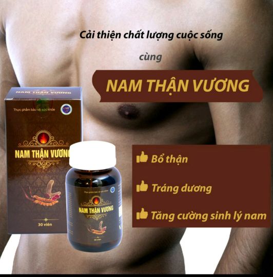 Viên uống sinh lý nam giới Nam Thận Vương - Sản phẩm cao cấp uy tín chính hãng VAK tốt cho sức khoẻ được bộ Y Tế chứng nhận, Sản xuất tại nhà máy dược đạt tiêu chuẩn GMP Quốc Tế.Thực phẩm bảo vệ sức khỏe Nam Thận Vương hỗ trợ bổ thận, tráng dương, tăng cường chức năng sinh lý, hỗ trợ làm chậm quá trình mãn dục nam, giảm đau lưng, mỏi gối, tiểu đêm nhiều lần do chức năng thận suy giảm. 1. Thông tin sản phẩm viên uống sinh lý nam giới Nam Thận Vương:- Nhà sản xuất: Công ty TNHH dược phẩm Tradiphar- Tiêu chuẩn: TCCS- HSD: 3 năm kể từ ngày sản xuất2. Thành phần của sản phẩm viên uống sinh lý nam giới Nam Thận Vương: Eurycoma longifolia (bá bệnh), Nhục thung dung, Dâm dương hoắc, Ba kích, Thỏ ty tử, Nhung hươu, Nhân sâm, Đỗ trọng, Trâu cổ, Đông trùng hạ thảo, Kỳ tử, Bạch tật lê, Arginine, Thành phần khác vừa đủ 1 viên3. Công dụng của sản phẩm viên uống sinh lý nam giới Nam Thận Vương:- Hỗ trợ bổ thận, tráng dương, tăng cường sinh lực.- Giúp tăng cường chức năng sinh lý, làm chậm quá trình mãn dục nam.- Giảm tiểu đêm, tiểu nhiều lần, đau lưng mỏi gối, chức năng thận suy giảm.4. Đối tượng sử dụng sản phẩm viên uống sinh lý nam giới Nam Thận Vương:- Nam giới chức năng sinh lý suy giảm với các biểu hiện: yếu sinh lý, di tinh, mộng tinh, râu, tóc bạc sớm, xuất tinh sớm.- Người chức năng thận suy giảm: đau lưng, mỏi gối, ù tai, tiểu đêm, tiểu nhiều lần.- Người bị suy giảm về số lượng tinh trùng, xuất tinh yếu, tinh trùng không đủ độ đậm đặc.5. Hướng dẫn sử dụng sản phẩm viên uống sinh lý nam giới Nam Thận Vương:- Uống 2 viên/lần x 2 lần/ngày.- Nên sử dụng đủ liệu trình kéo dài 1-3 tháng để có hiệu quả lâu dài và mạnh nhất.- 1 lọ nắp xoắn cao cấp chứa 30 viên nhộng6. Hướng dẫn bảo quản sản phẩm viên uống sinh lý nam giới Nam Thận Vương: - Để nơi khô mát, tránh ánh sáng trực tiếp.