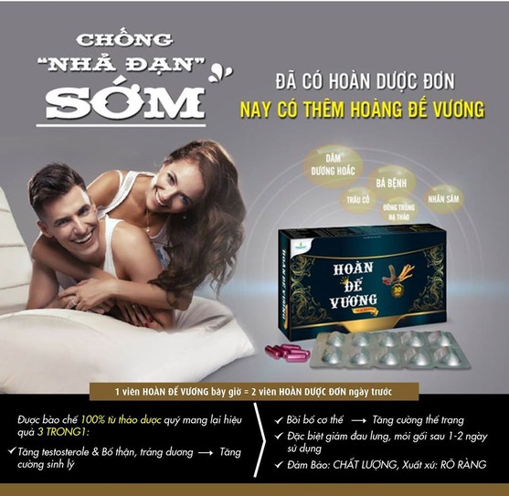 Hoàn Đế Vương g thức cải tiến đặc biệt từ Hoàng Dược Đơn sản phẩm được đánh giá cao về chất lượng, an toàn đã giúp hơn 80% phái mạnh lấy lại phong độ, bồi bổ sức khỏe