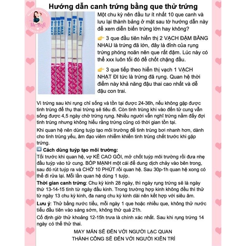 ✅Ai nên dùngTinh Trùng Yếu bơi kémVợ viêm nhiễm môi trường PH rất tệ TT bơi vào đều chết trước khi gặp trứngVợ bị vòi trứng hạn chế cần môi trường tốt để tt len lỏi tìm trứng nhanh hơn trước khi trứng rụng vì trứng sau rụng chỉ 24-36h là tiêuĐặc biệt nhất là các chị mong sinh con trai nhưnh không có tiền sàng lọc thì chọn Ritex là điều hiển nhiên vì môi trường tốt - TT khoẻ toàn các cá thể xuất sắc việc tạo 1 bé trai là trong lòng bàn tay1. Canh trứng rụng bằng que thử trứng:1 lần canh trứng nên đầu tư ít nhất 10 que canh và giữ que lại để xem diễn biến trứng lớn hay không4 que đầu tiên gạch chân màu vàng que hiển thị vậy là trứng đã lớn ( 2 vạch đỏ đậm bằng nhau ) đây là đỉnh của rụng trứng phóng noãn nên que rất đậmTiếp 3 que gạch chân xanh hiển thị vạch 2 nhạt đi và trứng đã rụng đủ điều kiện để xxx‼️ LƯU Ý KHI THỬ 2v ĐỎ ĐẬM BẰNG NHAU HÃY XXX LUÔN TỐI ĐÓ ĐỂ CHỐT CHẶNG ĐẦU CHẶNG ĐUÔI.Vì trứng chỉ sống và tồn tại được 24-36h, nếu k gặp được tt để thụ thai trứng sẽ tiêu đi. Còn tinh trùng khi vào đến tử cung vẫn sống được 5,6 ngày chờ trứng rụng. Nhiều người vẫn nghĩ trứng nằm đấy đợi tinh trùng nhiiưng không hiểu rằng trứng cũng có thời gian tồn tại.Vì vậy dùng tuýp tạo môi trường để tt bơi nhanh gặp trứng hơn, dành cho tinh trùng yếu, âm đạsso viêm nhiễm khiến tinh trùng chết trước khi gặp trứng.➡ Cách dùng tuýp tạo môi trường:Tối trước khi xxx, mở chốt đưa nhẹ đầu tuýp vào tử cung. Bóp mạnh để dung dịch chảy đều. Sau đó kê gối cao lên ở mông 10 phút để dung dịch chảy đều trong lòng âm đạoRồi 2vc cứ tự nhiên nhéChu kỳ kinh 28 ngàyThì nwgày rụng trứng sẽ là ngày thứ 13-14-15 tình từ ngày đầu kinhTrong trường hợp kinh k đềuSạch kinh 8-9 ngày thửu khi nào 2 vạch đậm bằng nhau nhauNên thử giờ cố định 12-15h trưa, thử bằng nước tiểu như thử thai. Mỗi ngày thử 1 que. Mỗi lần quan hệ dùng 1 tuýp ritex.
