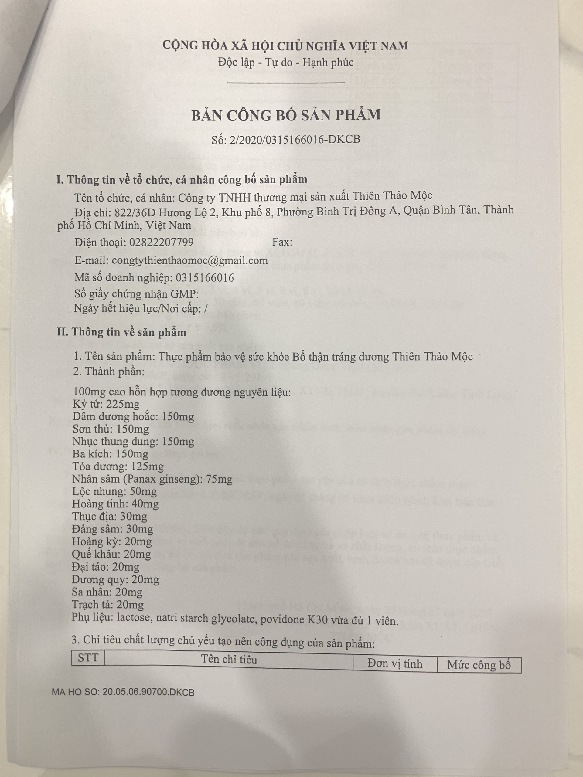 _ Sản xuất tại Công ty TNHH Thiên Thảo Mộc