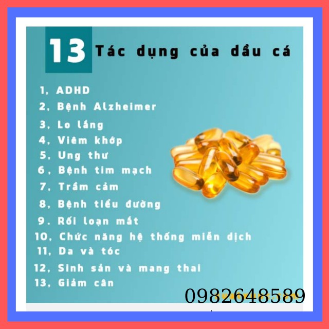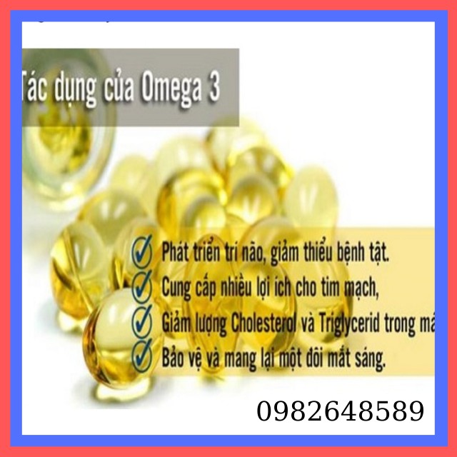Thông tin sản phẩm Dầu Cá 3 Bổ Não, Sáng Mắt, Khỏe Tim Mạch ,Hộp 300 ViênXuất sứ: Hàn Quốc* là những chất axit béo thiết yếu không thể thiếu trong cơ thể con người. Cơ thể chúng ta không thể tự tổng hợp chúng được mà cần phải nhờ thực phẩm mang vào.Quy cách: Hộp Đỏ 300 viên---THÀNH PHẦN DẦU CÁ 3- Fish oil : 1000mg- EPA (Eicosapentaenoic aicd) : 420mg- DHA (Docosahexaenoic acid) : 280mg- Coenzym Q10 : 10mg- Vitamin D3: 2000IU- Phụ liệu : Dầu đậu nành, gelatin, glycerin, sáp ong trắng, màu thực phẩm, sorbitol, dầu cọ, vanillin, Titan dioxyd, nipazin, nipazol, nước tinh khiết vừa đủ hai viên.ƯU ĐIỂM CỦA DẦU CÁ 3- Sản xuất tại nhà máy đạt chuẩn GMP Bộ Y tế- Được Bộ Y tế cấp phép sản xuất, đạt chuẩn vệ sinh an toàn thực phẩm- Thành phần cao, dầu cá 1000mg, EPA 180mg, DHA 120mg- Tác dụng nhanh chóng, an toànG DỤNG DẦU CÁ 3- Người mỡ trong máu cao, nguy cơ mắc bệnh tim mạch , xơ vữa động mạch.- Người mỏi mắt, thị lực giảm cần bổ sung dinh dưỡng cho mắt.- Người sử dụng vi tính, xem tivi nhiều hoặc đọc sách báo nhiều giờ liên tục :học sinh, sinh viên, nhân viên văn phòng.* Sử dụng 3 sẽ giúp bạn: - Giúp bồi bổ mô võng mạc mắt, giúp sáng mắt, giảm mỏi mắt khi xem tivi, sử dụng vi tính. - Hỗ trợ tuần hoàn máu, bảo vệ tim mạch, ngăn ngừa các bệnh tim mạch, bệnh cao huyết áp, nhồi máu cơ tim, xơ vữa động mạch. - Giúp làm giảm đau nhức do xưng khớp xương, bảo vệ và hỗ trợ hệ thống miễn dịch, ngăn ngừa các bệnh khớp tự nhiên. - Cải thiện trí nhớ, tăng khả năng tập chung.CÁCH SỬ DỤNG DẦU CÁ 3- Dùng cho người lớn và trẻ em từ 6 tuổi trở lên.- Trẻ em trên 6 tuổi : Ngày uống 1 viên.- Người lớn : Ngày uống 2 viên.LƯU Ý KHI SỬ DỤNG DẦU CÁ 3- Sản phẩm không phải là thuốc và không có tác dụng thay thế thuốc .- Không dùng cho người mẫn cảm với thành phần sản phẩm.- Hạn sử dụng 3 năm từ ngày sản xuất (in trên bao bì).- Bảo quản nơi khô ráo, thoáng mát, tránh ánh nắng chiếu lên sản phẩm. Phân phối CTY TNHH TM VÀ XNK NURI616/43/10 LÊ ĐỨC THỌ, PHƯỜNG 15, GÒ VẤP HCMĐ..T 0982 648 589#dầu_cá, #3,#0mega3salmonoil1000mg,#daucahanquoc,#3hanquoc