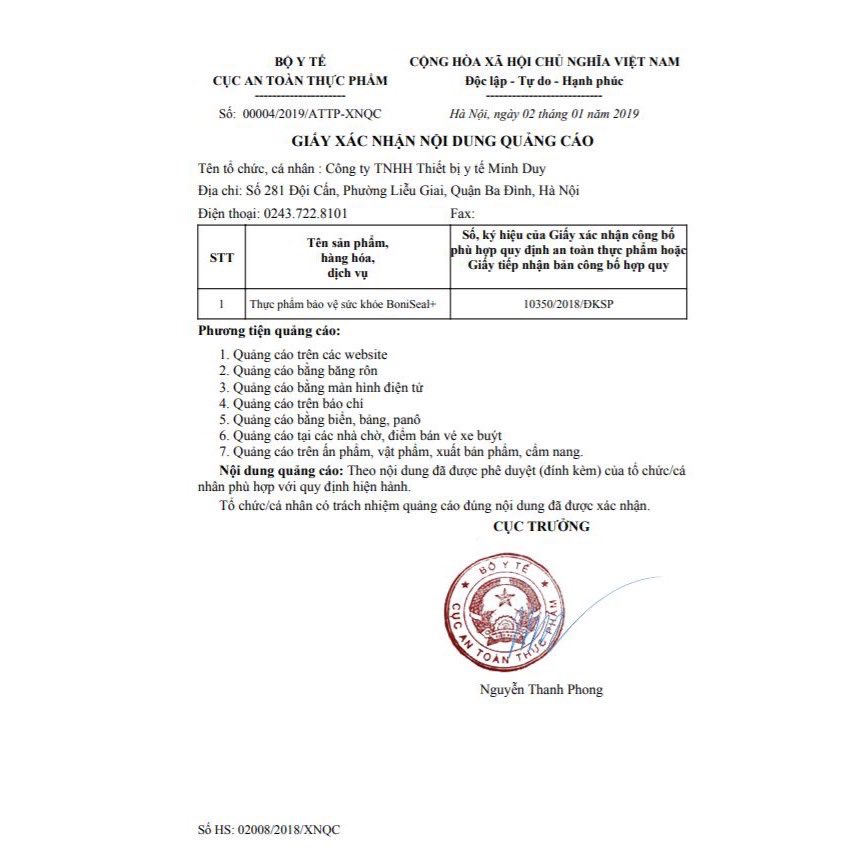 Quy cách BoniSeal:Hộp (Lọ): 60 viên giá: 540.000đ