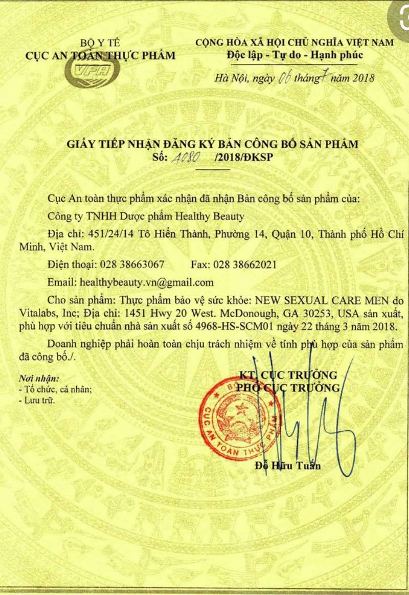 Quy cách New Sexual Care MEN:Hộp 1 lọ 30 viên giá: 529.000đ
