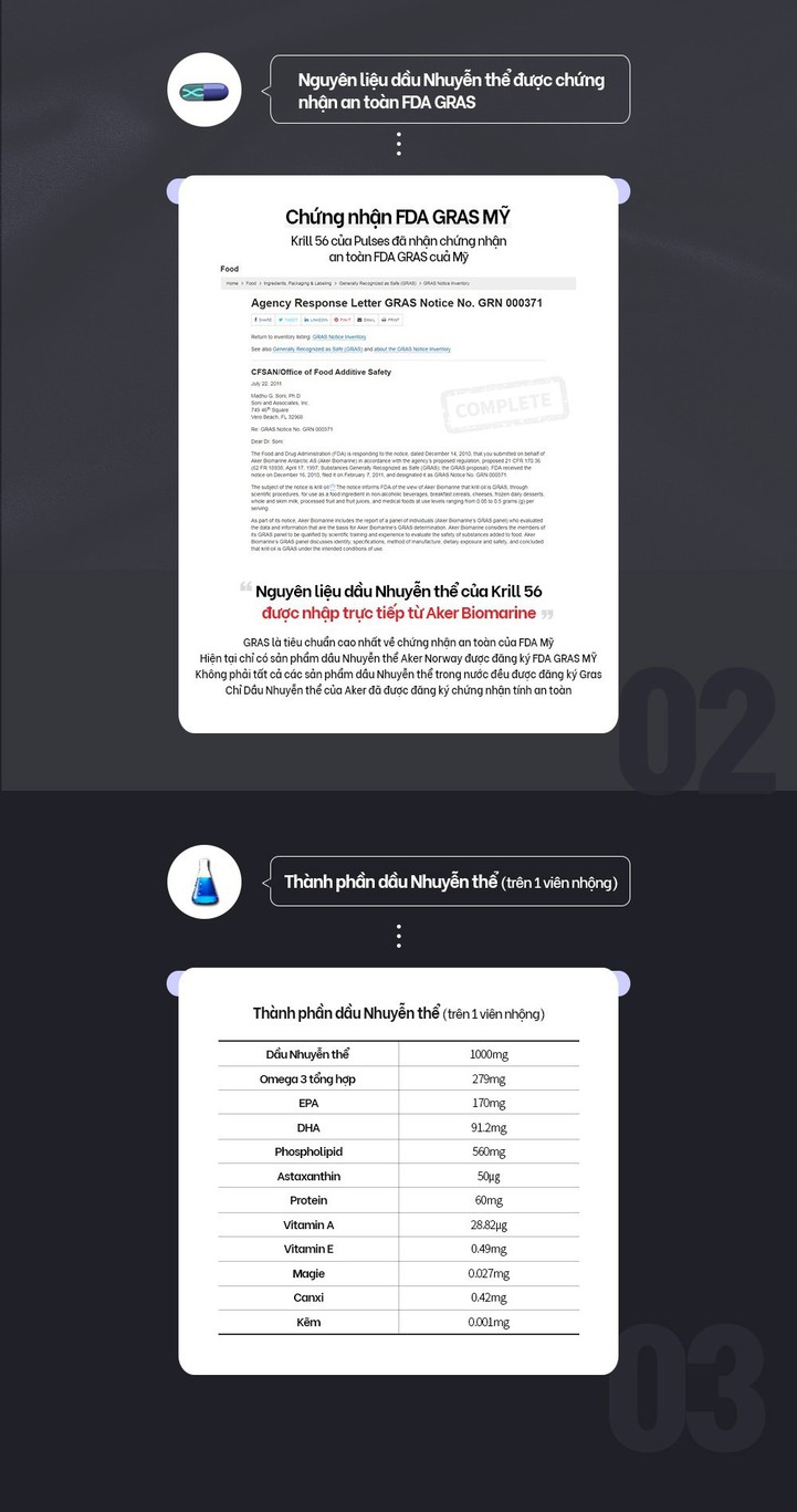 - Phospholipid luôn đảm bảo trên mức 56%, hòa tan mỡ trong máu, giúp đẩy lùi mỡ xấu và hấp thụ Omega tốt hơn