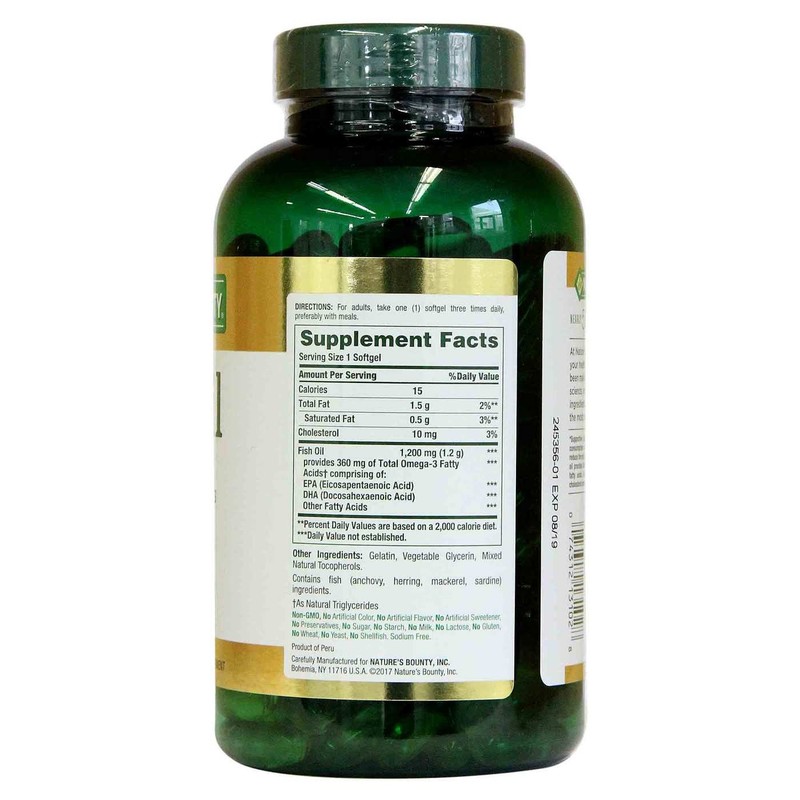 Dầu Cá Natures Bounty Fish Oil 1200mg Omega-3 360mg, hộp 200 viên