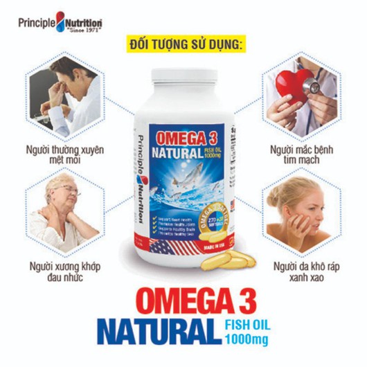 Viên uống dầu cá tự nhiên Omega 3 Natural Fish Oil 1000mg PRINCIPLE NUTRITION USA bổ sung các chất béo không no hỗ trợ sức khỏe xương khớp tim mạch giúp chống lão hóa giảm trầm cảm giúp dễ ngủ và cải thiện sự tập trung - Hộp 300 viên