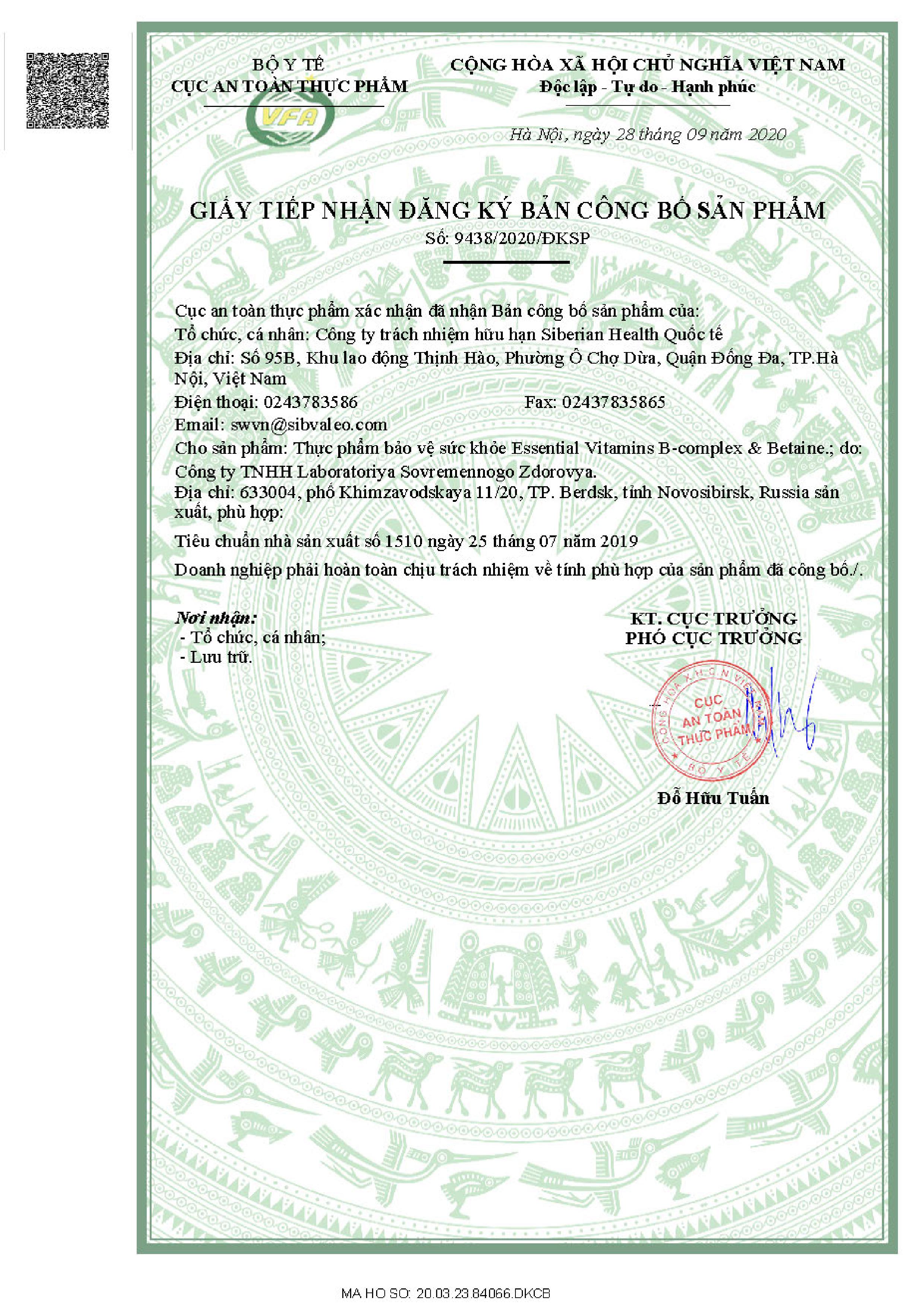 Xuất xứ: Liên Bang NgaThương nhân nhập khẩu và chịu trách nhiệm về chất lượng sản phẩm: CÔNG TY TNHH SIBERIAN HEALTH QUỐC TẾ Địa chỉ: Tầng 2, tòa nhà HH-N01 Gold Season, 47 Nguyễn Tuân, Phường Thanh Xuân Trung, Quận Thanh Xuân, Thành phố Hà Nội, Việt Nam. Điện thoại: 024.3783.6033