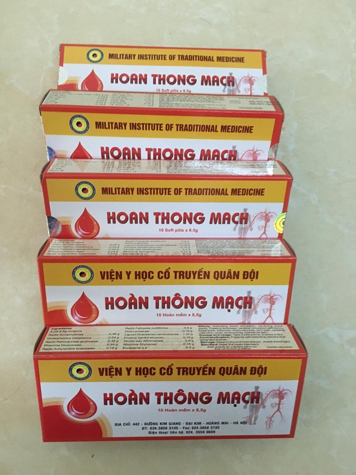 HOÀN THÔNG MẠCH- VIỆN Y HỌC CỔ TRUYỀN QUÂN ĐỘI là một sản phẩm đặc sắc làm nên thương hiệu cho Viện Y học cổ truyền Quân đội. Thuốc không những được sử dụng rộng rãi trong nước mà còn được những việt kiều rất ưa sử dụng. Thuốc đặc biệt hiệu quả trong điều trị bệnh Viêm tắc động mạch, Viêm tắc tĩnh mạch chi, suy van tĩnh mạch