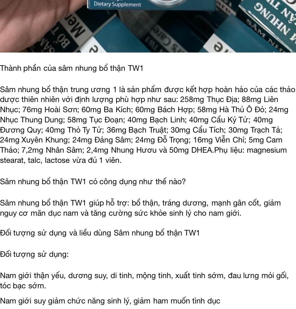 Sâm nhung bổ thận TW1 Bổ thận, tráng dương, mạnh g...