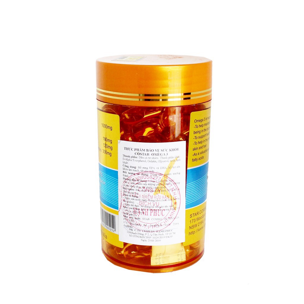 ⭐️ Hệ thống nhà thuốc Mát Tay rất vui vì bạn đã tham quan cửa hàng của chúng tôi. Chúng tôi cam kết tất cả các sản phẩm của Hệ thống nhà thuốc Mát Tay phân phối 100% sản phẩm chính hãng, giá bán chuẩn nhất thị trường, nếu bạn phát hiện sản phẩm của chúng tôi cung cấp không phải chính hãng chúng tôi xin hoàn gấp đôi số tiền mà bạn đã đặt mua tại cửa hàng của chúng tôi.Trong quá trình sử dụng sản phẩm bạn có thắc mắc hoặc cần tư vấn về sức khỏe hay sản phẩm xin vui lòng gọi qua zalo số điện thoại 0907003501 hoặc 0384856772 đội ngũ dược sĩ đại học trên 10 năm kinh nghiệm của chúng tôi rất vinh dự được phục vụ bạn.⭐️ Quy cách : Chai 100 viên.⭐️ Xuất xứ : Úc.⭐️ Thành phần :- Dầu cá tự nhiên.Thành phần khác:D-Alpha Tocopherol, Gelatin,Glycerol, nước tinh khiết- Công dụng: Bổ sung EPA và DHA, hỗ trợ sức khỏe tim mạch, tốt cho mắt.- Đối tượng sử dụng: Dùng cho người trưởng thành.- Cách dùng: Uống 1 viên mỗi ngày.🚫 Chú ý :- Không dùng cho trẻ em.- Không dùng cho những người bị hen suyễn và bị dị ứng với phấn hoa- Sản phẩm này không phải là thuốc, không có tác dụng thay thế thuốc chữa bệnh.- Không sử dụng cho người có mẫn cảm với bất kỳ thành phần nào của sản phẩm.- Đọc kĩ hướng dẫn sử dụng trước khi dùng.💕 Sản phẩm hiện có bán tại Hệ Thống Mát Tay 💕o MÁT TAY SỐ 1: 210 BẠCH ĐẰNG, TP QUY NHƠN.o MÁT TAY SỐ 2: 05B TĂNG BẠT HỔ, TP QUY NHƠN.o MÁT TAY SỐ 3: NGÃ 3 ĐIỆN BIÊN PHỦ – TRƯƠNG VĨNH KÝ, TP QUY NHƠN.o MÁY TAY SỐ 6: 03 LÊ THANH NGHỊ, KHU BẮC SÔNG HÀ THANH, TP QUY NHƠN.Điện thoại: 0907.033.501 – 0384.856.722.[mát tay online]