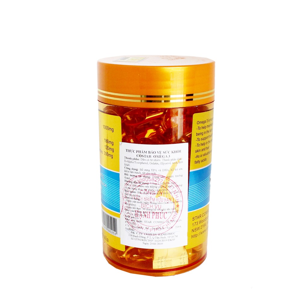 Costar - Omega 3 - Chai 100 viên - Bổ sung EPA và DHA, hỗ trợ sức khỏe tim mạch, tốt cho mắt
