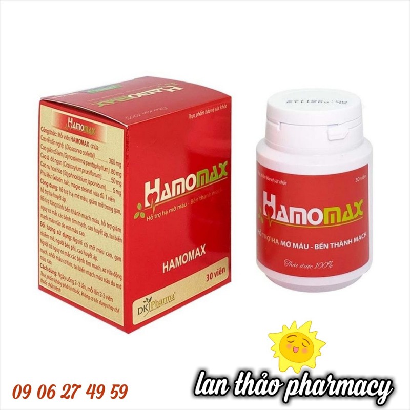 HAMOMAX LỌ 30 VIÊN HỖ TRỢ HẠ MỞ MÁU BỀN THÀNH MẠCHThành phần + Cao rễ Nần nghệ (Dioscorea collettii)...........360mg + Cao 255.000đ