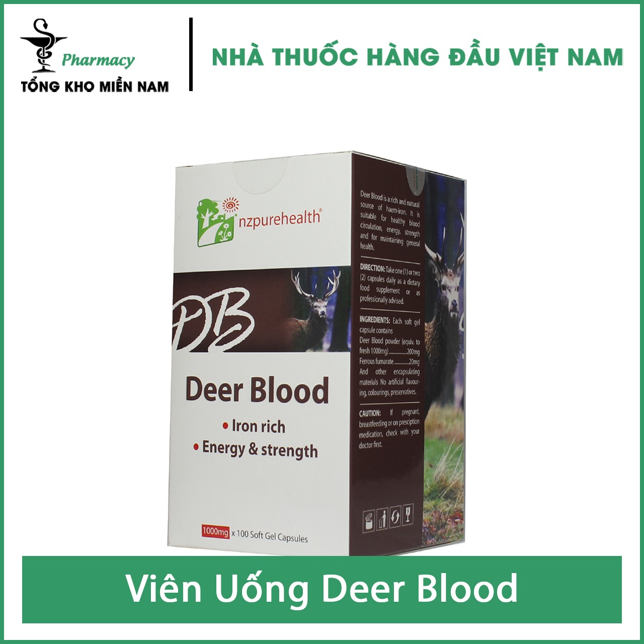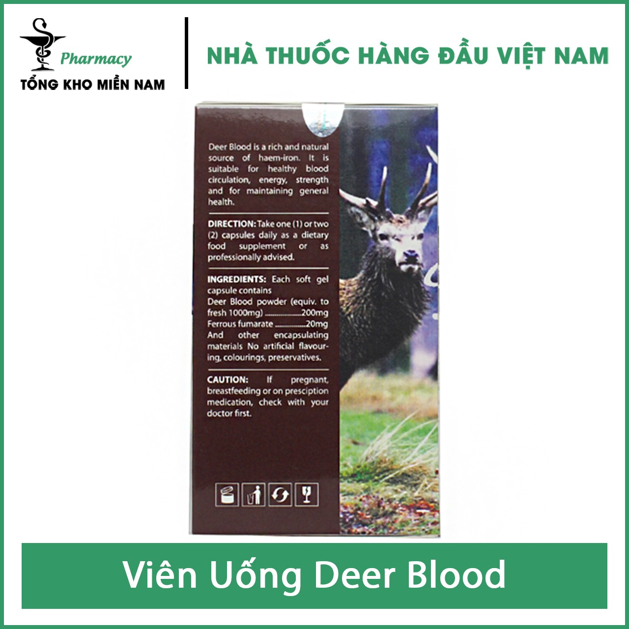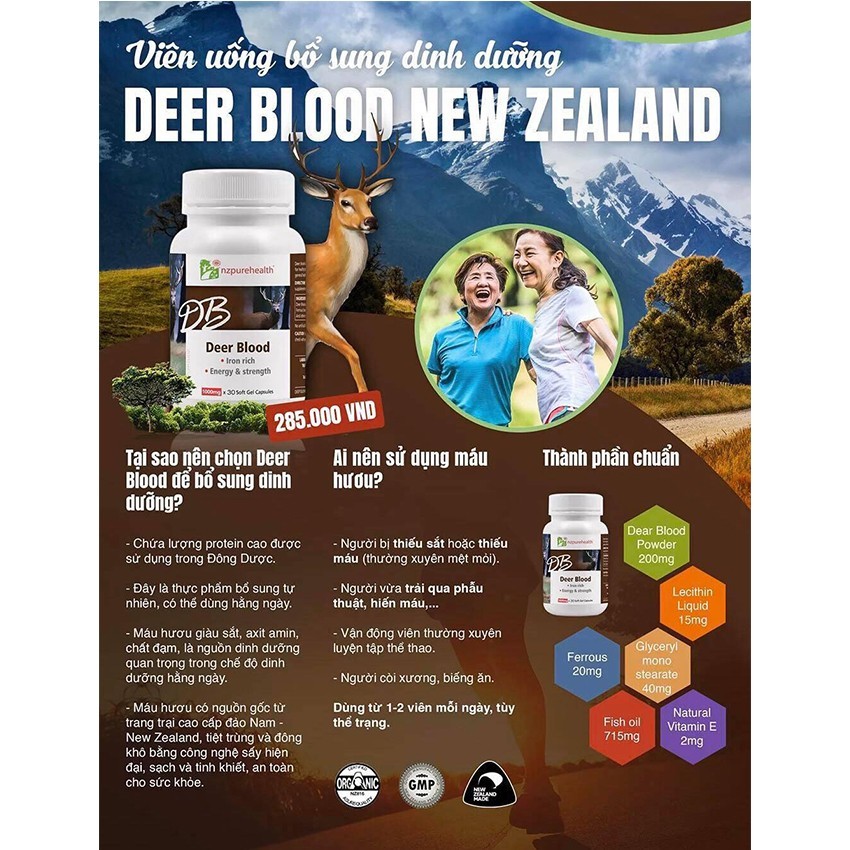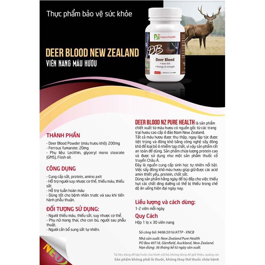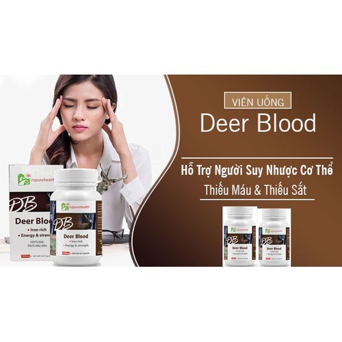 Viên Uống Deer Blood - Hỗ Trợ Người Suy Nhược Cơ Thể, Thiếu Máu & Thiếu Sắt - Hộp 30 viên - Tổng Kho MiềnNam