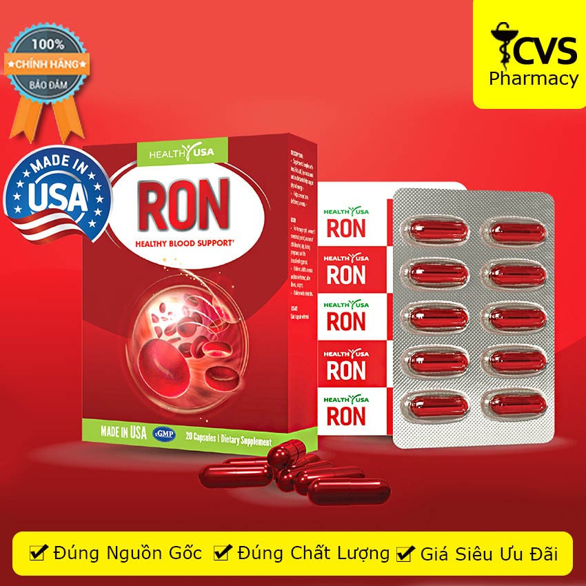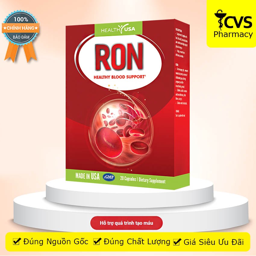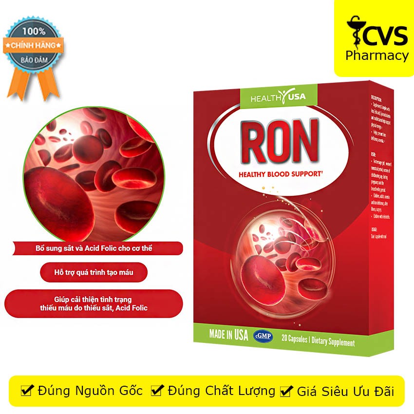 RON (Healthy Blood Support) - viên uống hỗ trợ quá trình tạo máu, bổ sung sắt và Acid Folic cho cơ thểQuy cách đóng gói:Hộp 178.000đ
