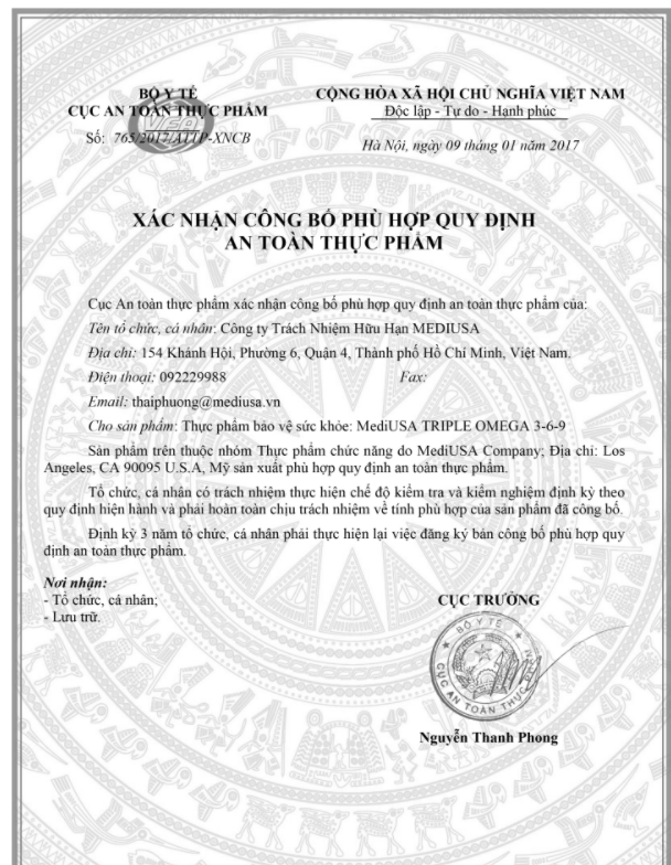 5. Số XNCB: 765/2017/ATTP-XNCB