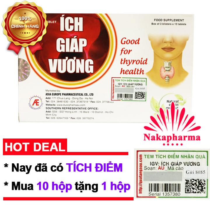 ❤ (10 TẶNG 1) ÍCH GIÁP VƯƠNG 30V - HỖ TRỢ ĐIỀU TRỊ NHƯỢC GIÁP, CƯỜNG GIÁP GRAVES BASEDOW, BƯỚU, UNG THƯ TUYẾN GIÁP ��