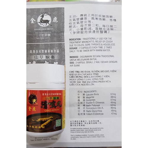 VIÊN UỐNG HO ĐÔNG TRÙNG QING KEWAN MALAYSIA