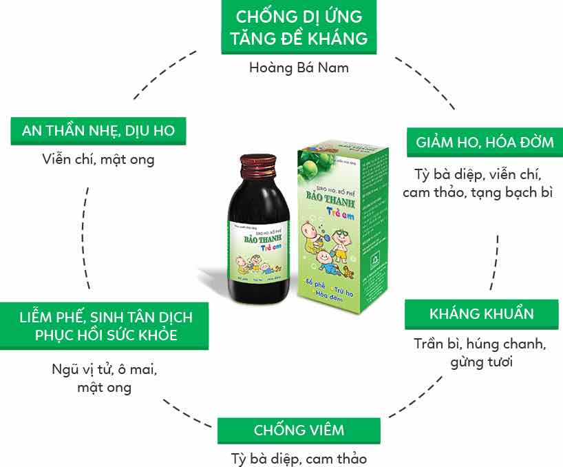 - Hỗ trợ các liệu pháp đtrị cho trẻ em bị mắc các chứng ho do cảm lạnh, nhiễm lạnh, cảm cúm, ho gió, ho khan, ho có đờm, ho do dị ứng thời tiết