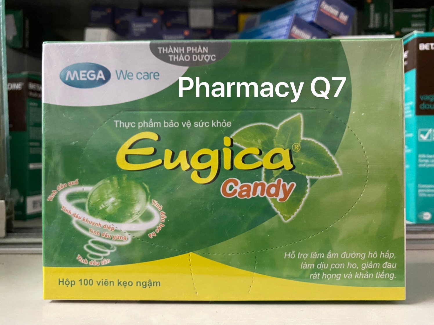Viên ngậm Eugica giúp giảm các triệu chứng ho, viêm họng, đau họng, rát cổ, khản tiếng. Đồng thời giúp bổ phế, thông cổ, mát họng, dịu ho, có thể dùng để ngăn ngừa khi thời tiết giao mùa hoặc hỗ trợ trong quá trình điều trị* ho.
