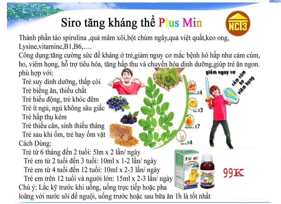 Siro Kháng Thể Plus Min - Tăng Cường Sức Đề Kháng