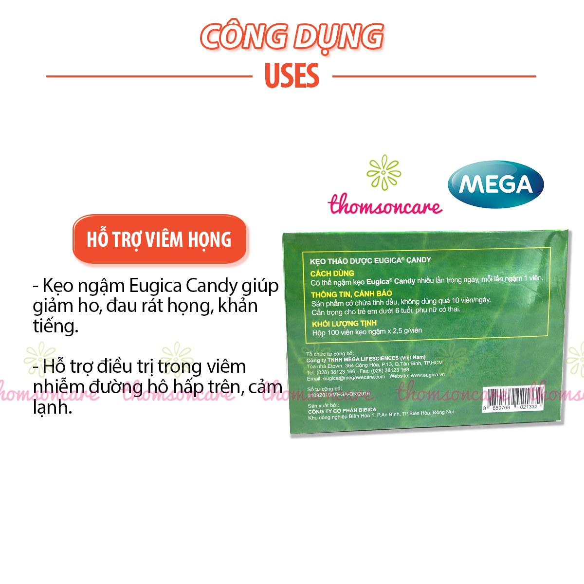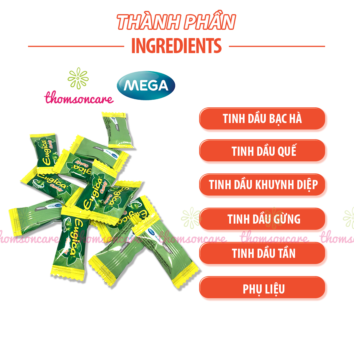 Eugica kẹo ngậm giảm ho đau họng từ thảo dược từ tinh dầu gừng bạc hà quế khuynh diệp