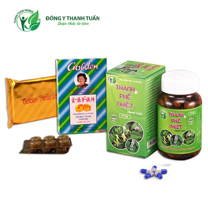 Bộ đôi điều trị viêm họng, đau rát họng: viên nang Thanh Phế Nhiệt & viên ngậm thảo dược Golden Throat Lozenge