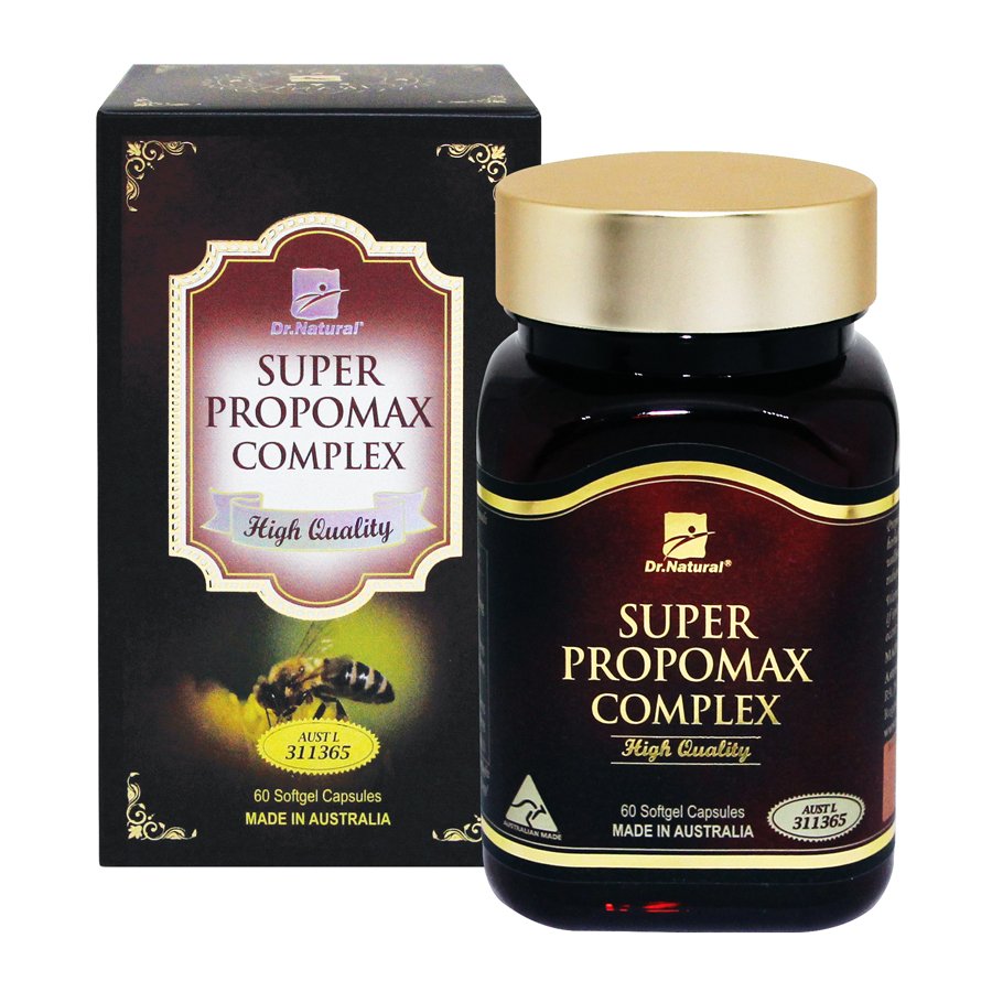 Dr Natural Super Propomax Complex là công thức kết hợp Keo ong, Maca, Trà xanh và Vitamin D giúp phục hồi sức khoẻ, hỗ trợ tăng cường miễn dịch, tăng cường thể lực.